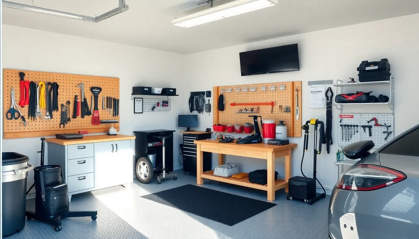 Maximizing wall space is critical for an organized garage. Wall-mounted pegboards offer customizable storage for tools and accessories, promoting easy access. Magnetic strips can hold metal tools securely, clearing valuable countertop space. Additionally, utilizing hooks for bicycles or ladders frees floor space, making movement easier. Floating shelves provide storage for seldom-used items while maintaining a clean look. Incorporating hooks for sports equipment encourages family engagement in activities while keeping everything organized.